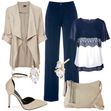 Allargherei il tacco o cambierei scarpa, ma pantalone e blusa mi piacciono e anche la combinazione con l'oro